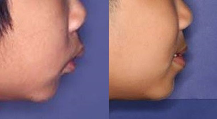 比如下面的“地包天”和短下巴两个孩子的治疗前后对比——