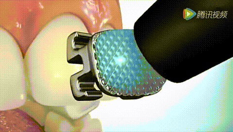 接下来使用光固化灯快速固化粘接剂,使托槽牢牢固定在牙齿上。接下来就在其他牙齿上重复同样的步骤,直到所有托槽都安装完成。