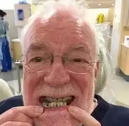 这位美国老先生75岁了,正在进行牙齿矫正。