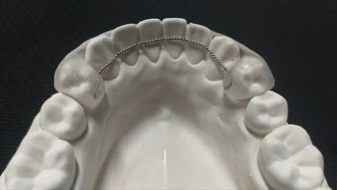 舌侧保持器:与前两种不同,舌侧保持器是粘接在牙齿上的,不能自行取下。所以,进食和清洁时都无需取下,正常刷牙即可。