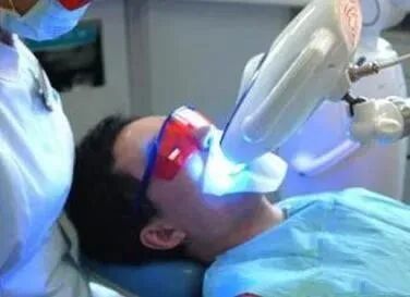 通过涂在牙齿表面的美白药物渗透到牙齿组织中去,然后通过特殊的冷光照射将美白剂凝固,从而达到美白的效果。