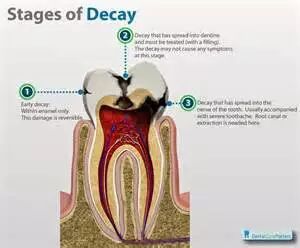 如果没有发现和及时治疗,龋齿会深入牙髓并造成牙髓感染。如果牙齿根部或牙龈和牙齿之间发生感染不及时处理则会导致牙周脓肿。对感染的牙髓进行根管治疗很有必要。