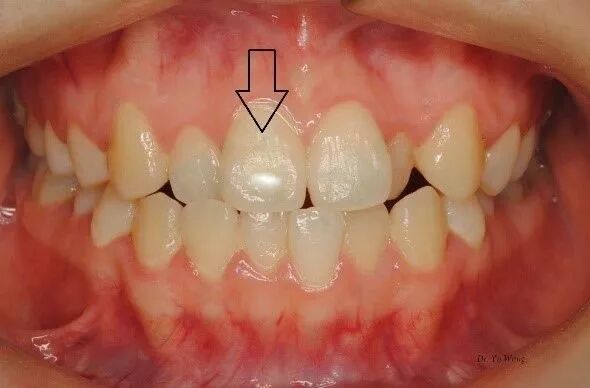 中切牙面小白斑为釉质沉积受干扰所致