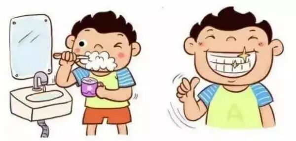 刷牙时要提醒孩子吐掉嘴里的漱口水,不要吞掉。