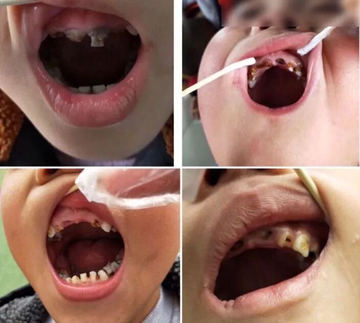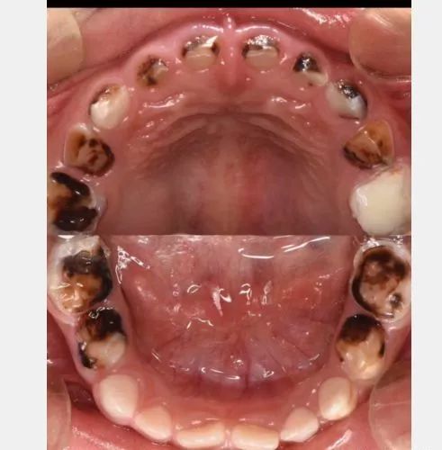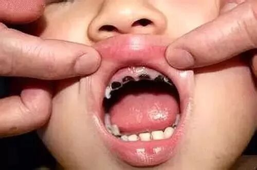 某儿童口腔科主任曾接诊一个2岁的小女孩,刚萌出16颗乳牙,其中8颗已经有不同程度的龋齿了,严重的需要做根管治疗。看着都让人揪心。
