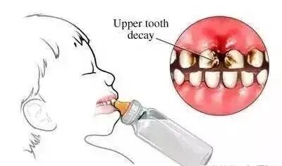 乳牙萌出之后,不要让幼儿长时间含着装有甜奶或甜饮料的奶瓶,尤其不能含奶瓶睡觉,否则会造成婴幼儿龋。1岁后应尽量减少使用奶瓶,且奶瓶内只能装白水和无糖奶,用杯子或勺喂含糖液体(如甜奶、果汁、蜂蜜水等)。1岁半到2岁应停止使用奶瓶。因为长期用奶瓶喂养,除了容易发生龋病外,还可妨碍孩子咀嚼功能的发育。