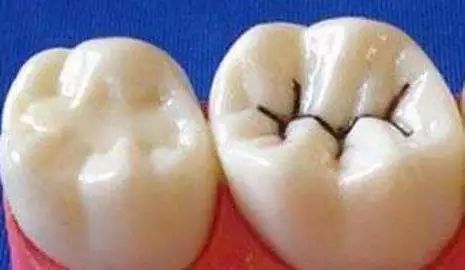 青少年中90%以上的龋齿(蛀牙、虫牙)发生在磨牙(后槽牙)咀嚼食物的咬合面上,这个牙面上有许多凹凸不平的点隙裂沟,是牙齿发育过程中牙尖融合所形成的,我们称之为“窝沟”。它形态复杂,深浅不一,刷牙、漱口等方法很难使窝沟完全清洁,是最容易发生龋齿的部位。