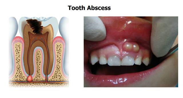 并不会!牙龈脓包是个狡猾的家伙,它可能在蛀牙的牙龈位置表现出来,像这样的: