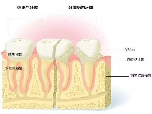 图解:健康牙齿与牙周病患牙齿
