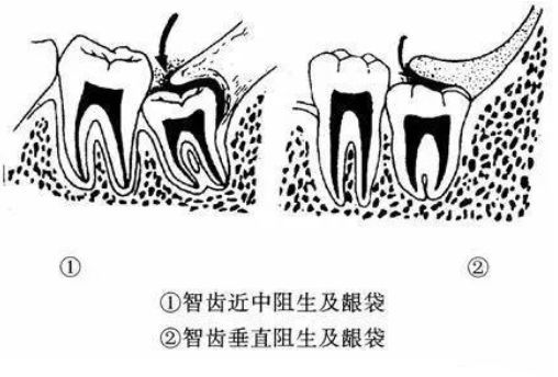 智齿向前生长挤压到邻牙。此外,向后、向舌侧、向颊侧、甚至向下长也都可能产生危害。