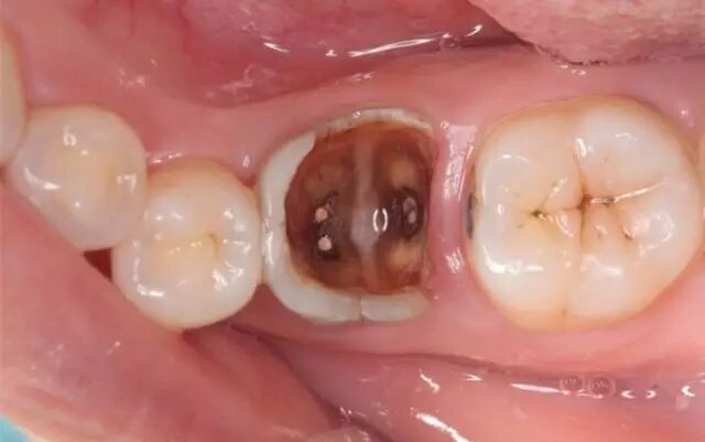 当您发现牙齿一块块脱落,只剩下少量牙冠时,您略感惋惜地说:“就这样吧!估计没办法救了。”