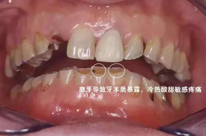 长期夜磨牙不仅会造成牙齿咬合面的磨损,也会增加牙齿表面裂隙及牙颈部的楔状缺损的产生,出现接触冷、热、酸、甜时痛疼不适的牙本质敏感症状,重者甚至导致牙齿神经坏死。