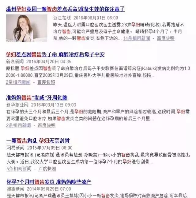 准备怀孕的女性,请务必、一定、果断、立即、趁早、毫不犹豫地拔掉阻生智齿!!!孕期是智齿冠周炎高发期且处理起来风险比较大,药不敢随便用,运气差的话,要么孕妇痛不欲生,死熬着并发骨髓炎等,要么抗菌素用上,放弃胎儿!央视娱乐节目没有报道,我这可就要报道下了,这些例子都有过: