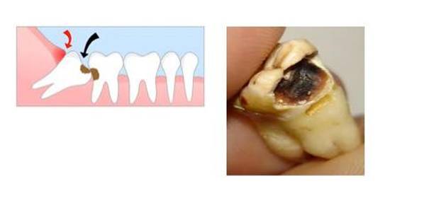 智齿萌出位置不正,即使没有顶坏邻牙,也可能与邻牙形成间隙,产生局部的“卫生死角”,食物残渣和细菌堆积在这些部位,我们日常刷牙很难清洁到,久而久之就容易引发龋齿