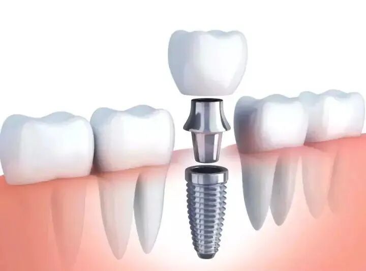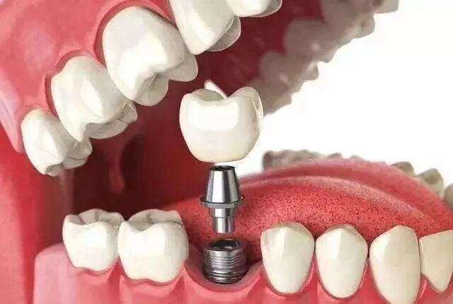 首先,医生会在牙槽骨上钻出来一个洞,将种植体植入、缝合;等待牙槽骨与种植体结合完成,之后再向上搭建安装连接扭(基台);再在上面加装牙冠。这样,一颗牙的种植就完成了。