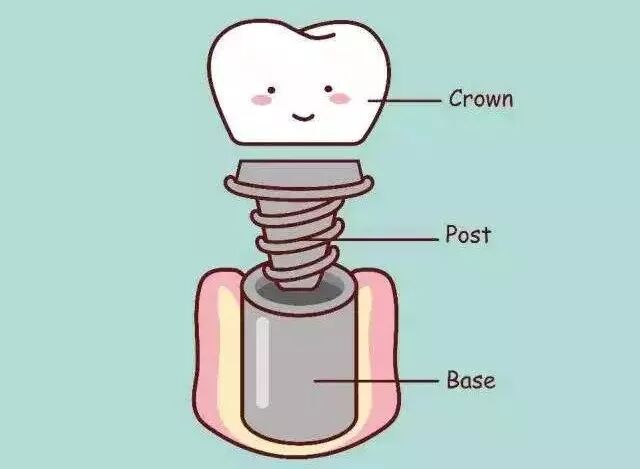 在牙槽骨中的种植体相当于牙根,它可以和牙槽骨生长在一起,所以能支撑并固定牙龈外的假牙。