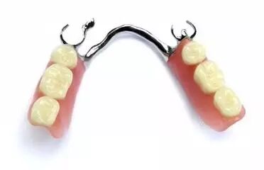 活动假牙由基托上的假牙和有弹性的金属钩组成,患者可自由取戴。它适应范围较广,绝大多数患者均可考虑,从缺失一颗牙到全口牙,即使两端邻牙不太坚固,也可安装。