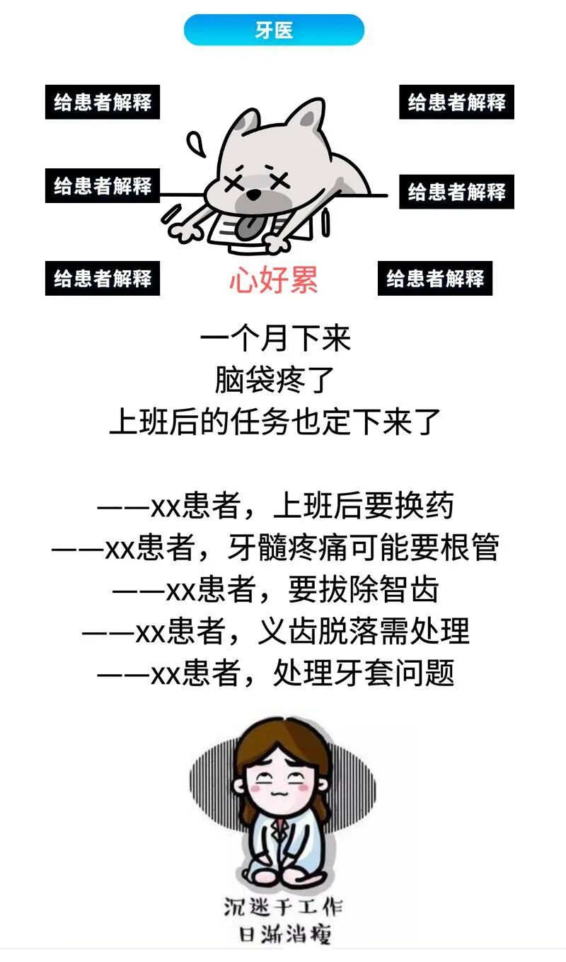 身为牙医,他们没有节假日,只有轮休!当全国人民等放假的时候,牙医们就在等加班!大年三十还是可以休息的,但接下来的日子就开始忙碌了,在大鱼大肉火锅料理中各种各样的口腔问题滋生,然后他们每天的状态是下面这样子的!