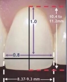 正常中切牙宽度和长度的最适比例为 75% ~ 85%,中切牙的长度在 9.5 ~ 11 mm之间。牙齿延迟性被动萌出,牙龈向牙根方向退缩不足,或由于萌出不足使得上颌牙齿的牙冠被不同程度的牙龈覆盖,从而使牙齿呈现短方形外观。