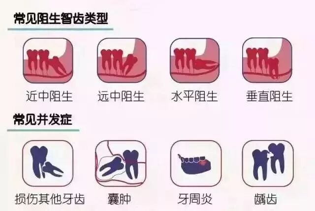 一些没有按正常方向长出的智齿(即阻生智齿),可能会导致: