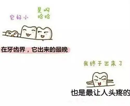 智齿,也就是最后一颗磨牙,一般在青春期以后开始长,甚至更晚。当然也有一部分人不长。但是由于人类进化的原因,下颌体积逐渐减小,很多人的下颌空间不足以生长出智齿,那么就会阻生。当智齿阻生或者生长方向不正时,经常会顶坏前面的第二磨牙或者引起智齿冠周炎,从而引起肿痛、口臭等症状。