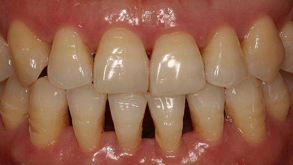 当牙齿拥挤不齐时,牙龈处于萎缩状态,当牙齿排列整齐后感觉牙齿间有黑三角,其实并不是戴牙套所造成的,而是牙龈本身状态既是如此。另外,牙齿拥挤,不存在正常的生理性磨耗,等牙齿排齐后,邻接点更靠近合方,牙龈处黑三角就出现了。