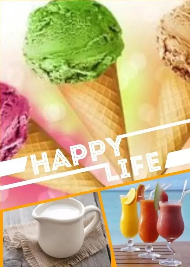 第一道菜:凉牛奶、冰淇淋、果汁。