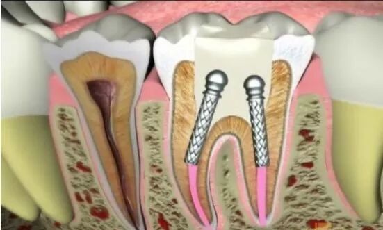 所以,我们需要将牙神经杀死,然后和坏死的组织一起清理出来,来消除炎症。