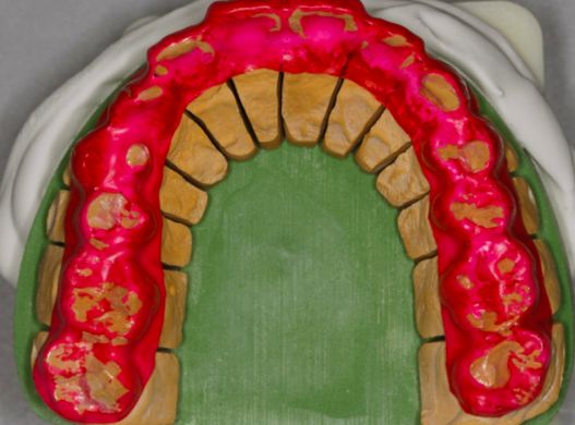 当然,还有一些更简单的检查方法,比如用一个表面涂色的膜片制成咬合板,戴起睡一觉,就晓得磨牙产生的是有害磨耗还是无害磨耗了。