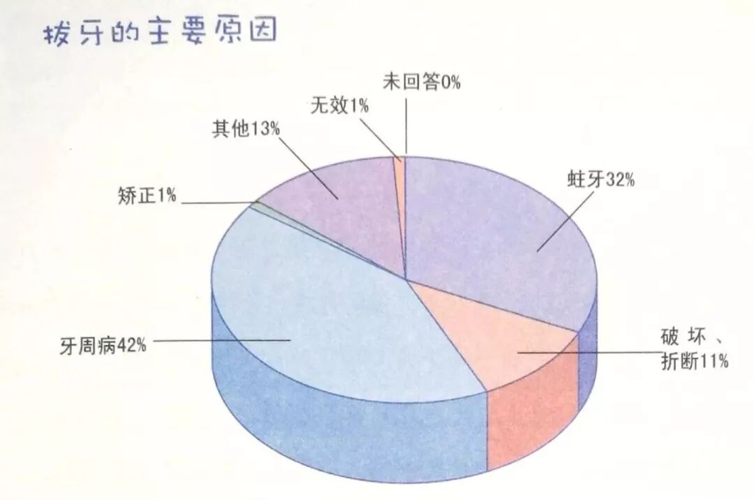 通过调查发现,人们拔牙的原因多是因为得了蛀牙或牙周病,少部分是因为交通事故等原因。