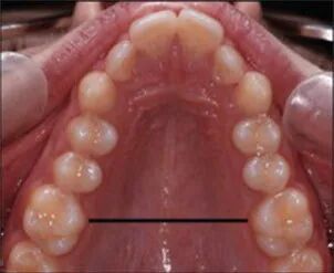 牙床狭窄:黑线所示为牙弓横向宽度 | 文献[2]