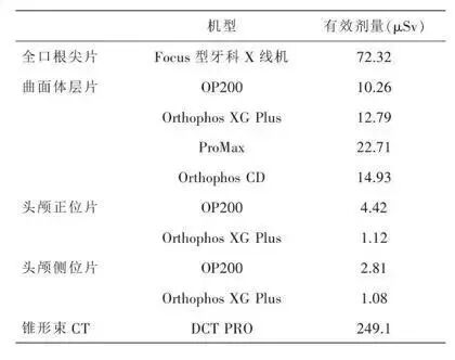 根尖片为 5.2 μSv ,全口根尖片为 72.32 μSv ,曲面体层片为 10 ~ 23 μSv ,头颅正位片为 1 ~ 5 μSv ,头颅侧位片为 1 ~ 3 μSv ,让人「闻风丧胆」的 CBCT 剂量一般也在 300 μSV 之内。
