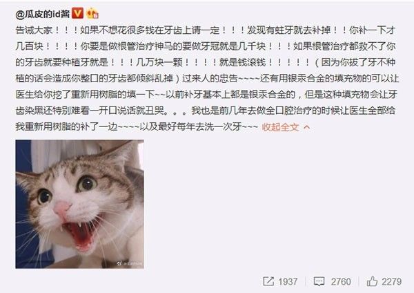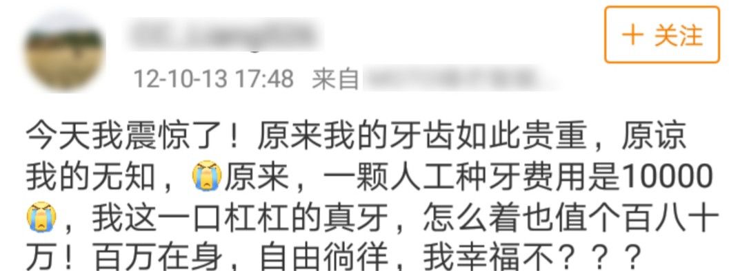 这无论如何也不能称为贵,上饭店吃顿饭都不只这点钱。而且饭得天天吃,补个牙至少能挺五六年,平均到每天,花费简直可以忽略不计,便宜到不能再便宜。