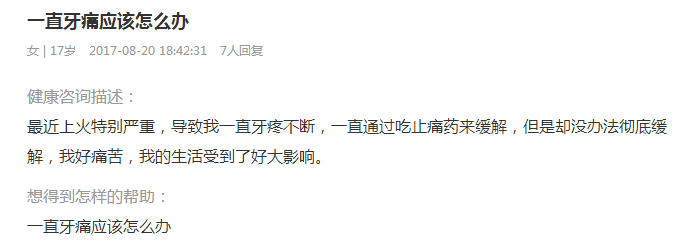 例1:常见网上求助——牙痛