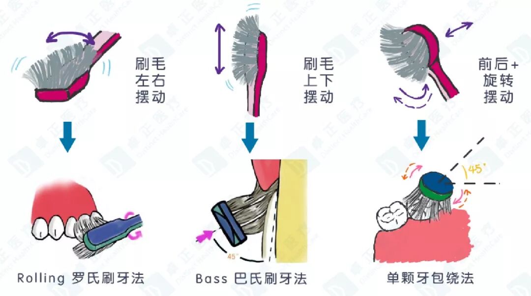 目前市面上主流的电动牙刷分为 旋转摆动、声波震动和复合震动 三类,但其实他们都属于机械振动( 运动方式不同 ),都是通过刷毛高频摆动摩擦牙面来清除菌斑的。