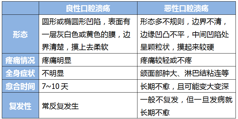 ▲良性口腔溃疡与恶性口腔溃疡对比