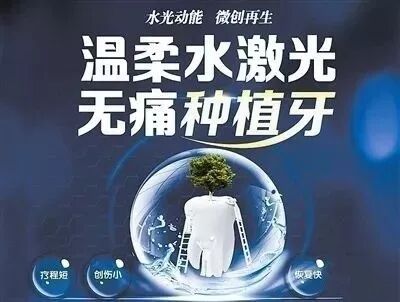 乱象:宣传中采用新名词,进一步误导消费者。比如某些诊所鼓吹的“激光种植牙”、“水激光种植”等。