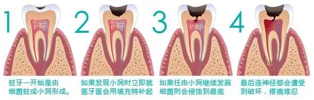 俗话说:小洞不补,大洞吃苦。蛀牙是牙齿健康的天敌,很多人从孩童时期就开始蛀牙,蛀牙不仅会导致牙齿疼痛而且长期蛀牙会龋坏牙齿,由浅入深的龋坏,牙齿里形成深深的牙洞,而此时只有及时的补牙才能防止蛀牙的进一步发展。