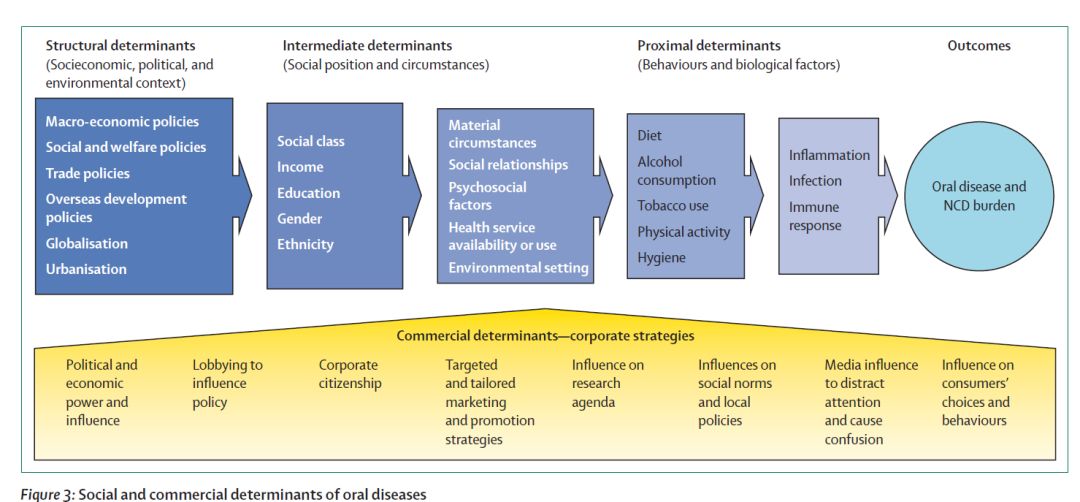 这份报告中公布,全球范围内的龋齿、牙周疾病和口腔癌症,基本脱离不了吸烟、喝酒和摄入含有添加糖份的饮食导致的,此外,还有一些人群由于种种原因不维护口腔卫生,基本的刷牙习惯也无法养成,则加重了疾病负担。