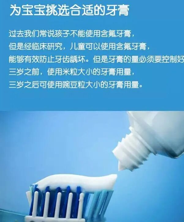 需要提醒各位家长注意的是,宝宝三岁时可以开始使用儿童含氟牙膏刷牙,每次用量约0.5克(豌豆粒大小),由家长帮助宝宝挤出牙膏以控制牙膏的用量。