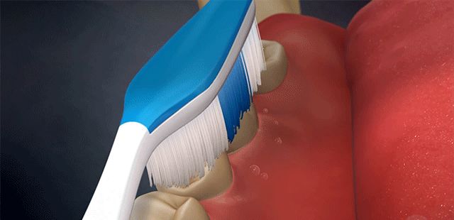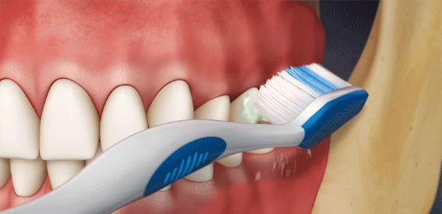 将刷毛放置在牙面上,顺着牙缝,上牙从上往下转动牙刷,下牙从下往上转动牙刷,每个部位刷6~8次,然后前移一个牙位,彼此要有重叠,不能跨度太大,以免遗漏牙位。