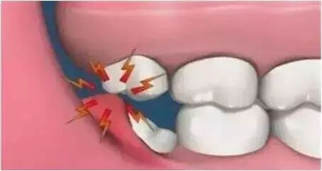 牙冠部分外露于牙龈之外,部分被牙龈覆盖。牙龈与牙体之间形成一个狭窄较深的盲袋,容易积存食物碎屑和细菌,一般刷牙漱口难以清洗干净;加之冠部牙龈易因咀嚼食物而损伤,形成溃疡。当全身抵抗力下降、细菌毒力增强时,便可引起牙冠周围组织炎症。