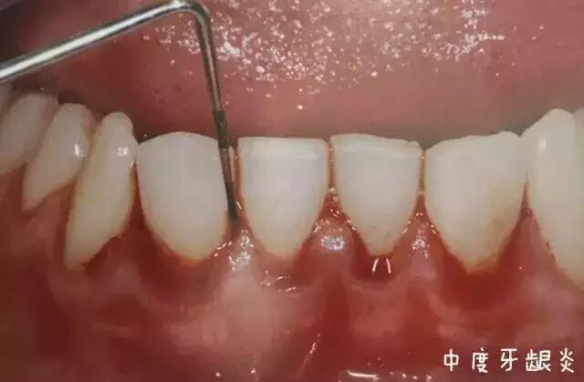 牙龈出血状况进一步加重,有时伴有牙龈充血溢脓