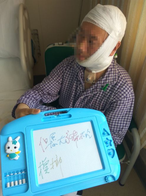 刘桑果的大部分左脸已经被“割掉”,萎缩的脸皮陷成只有拳头大的深坑,看起来狰狞又恐怖。