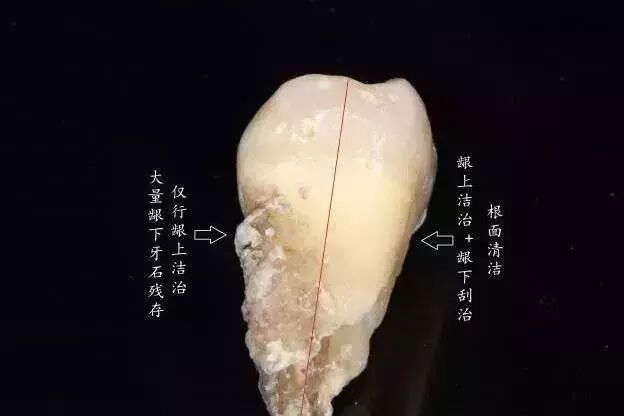 深度洗牙就是将工具深入牙龈乳头下刮去牙根表面感染的病变牙骨质,以及牙周袋内的牙结石和菌斑,刮的干净不干净,也是体现牙医受伤功夫的关键。