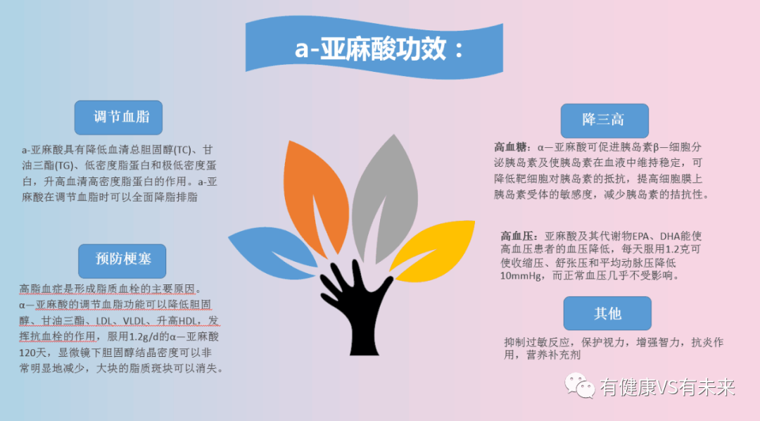 第四,有机亚麻籽粉是为了保护亚麻籽油而存在的,凡是这些有保护作用的果皮或种皮,都含有天然的微量物质,比如苹果的天然微量果蜡、比如亚麻籽粉中的微量氰化物、比如芹菜中的光敏物质,这都是植物出于自我保护而自然产生的物质,每天不超过50克的亚麻籽粉摄入量,身体是完全可以代谢掉的。 我们的建议是:16岁以上的成年人,每天食用10克即可。 近年经研究和临床实验,证实亚麻籽有以下功用: 肌肤娇柔亮泽 改善皮肤脂肪含量,使肌肤更幼滑、滋润、柔软有弹性,同时令皮肤呼吸及排汗正常,减轻种种皮肤问题。 改善女性经前综合症 有许多女性经前综合症的例子,症状都在一个月内每天吃新鲜的亚麻子油后完全消失,当然需要配合维他命及矿物质。 减轻过敏反应 亚麻籽有助减轻过敏反应,但由于整个身体要重新组织,要将过敏彻底消除需一段较长时间,更要全面性的营养辅助。 减轻哮喘 食用几天后就可以明显减轻哮喘发作。 改善关节炎实验证明,亚麻籽对治疗及防止关节炎有极大作用。 60%风湿关节炎患者接受奥米茄三及六脂肪酸治疗后,可以完全停止食用非类固醇的抗炎药物,而另外有20%则可次将非类固醇抗炎药物减半。 改善器官组织发炎 亚麻籽对预防器官组织发炎有很大帮助,其中包括脑膜炎、腱炎、扁桃腺炎、胃炎、回肠炎、结肠炎、动脉炎、静脉炎、摄护腺炎、肾脏炎、脾脏炎、肝炎、胰脏炎、耳炎等,还有癣及疮。 降低胆固醇 亚麻籽可降低血液中高胆固醇25%及三酸甘油脂65%,将多余的低密度胆固醇(LDL)转变成胆酸排出体外。 减低心脏负荷 可降低高血压,减少血脂含量,同时提高不饱和脂肪酸的水平,改善血液浓度,减低血液的黏性,保持血液的流动性,预防血管阻塞及有关疾病。 此外,亦能阻止血液凝结,预防中风(心脑动脉堵塞)、心脏病(心脏动脉堵塞)、肺脉栓塞(肺部动脉堵塞)及血管表面病症(即疸疮)。 改善肾功能 亚麻籽能调整前列腺素(Prostaglandin),促进肝、胰及脾脏分泌,令身体代谢运作正常。 改善便秘 改善肠脏功能,增加吸收能力,增加肠的蠕动能力使排便正常,减少便秘。 促进细胞健康 改善细胞膜的水份和弹性,增加细胞呼吸和营养交换功能,并加强身体细胞修补及愈合能力,使细胞健康,减低癌病机会。 精力充沛 平衡及改善身体血糖量,令你更有活力。 也能增加肌肉的持久力,更可令运动后疲劳肌肉更快复元。