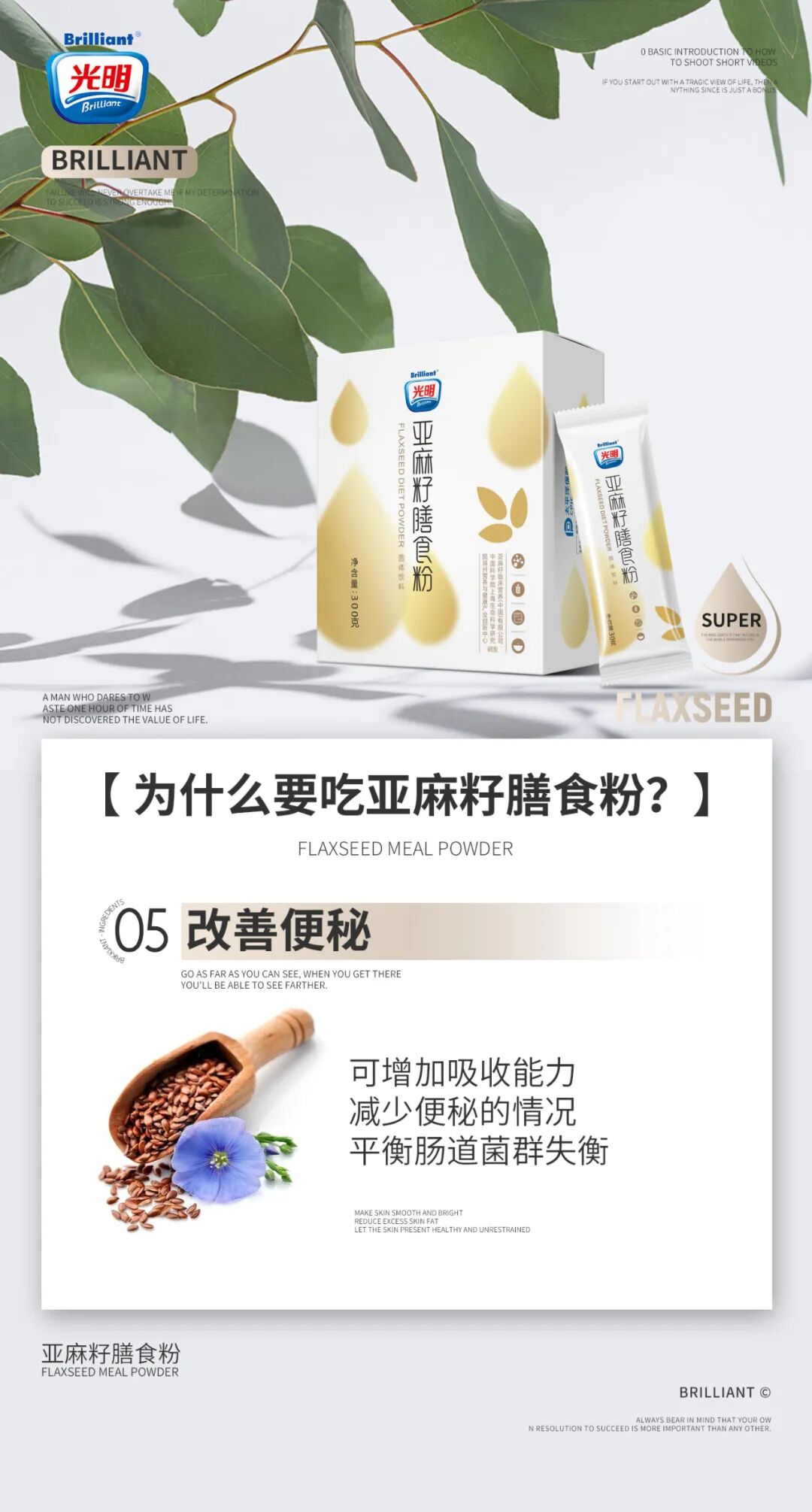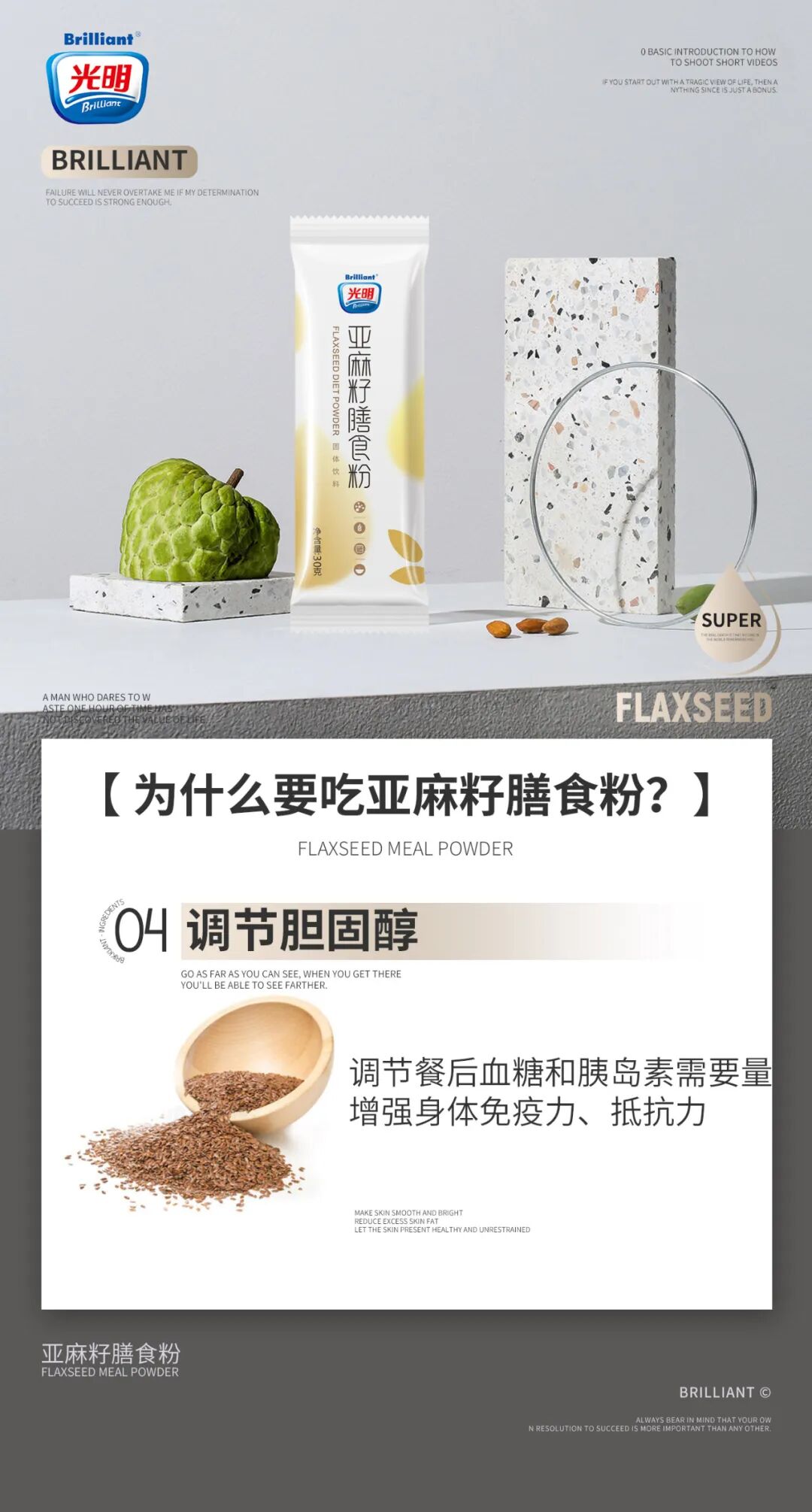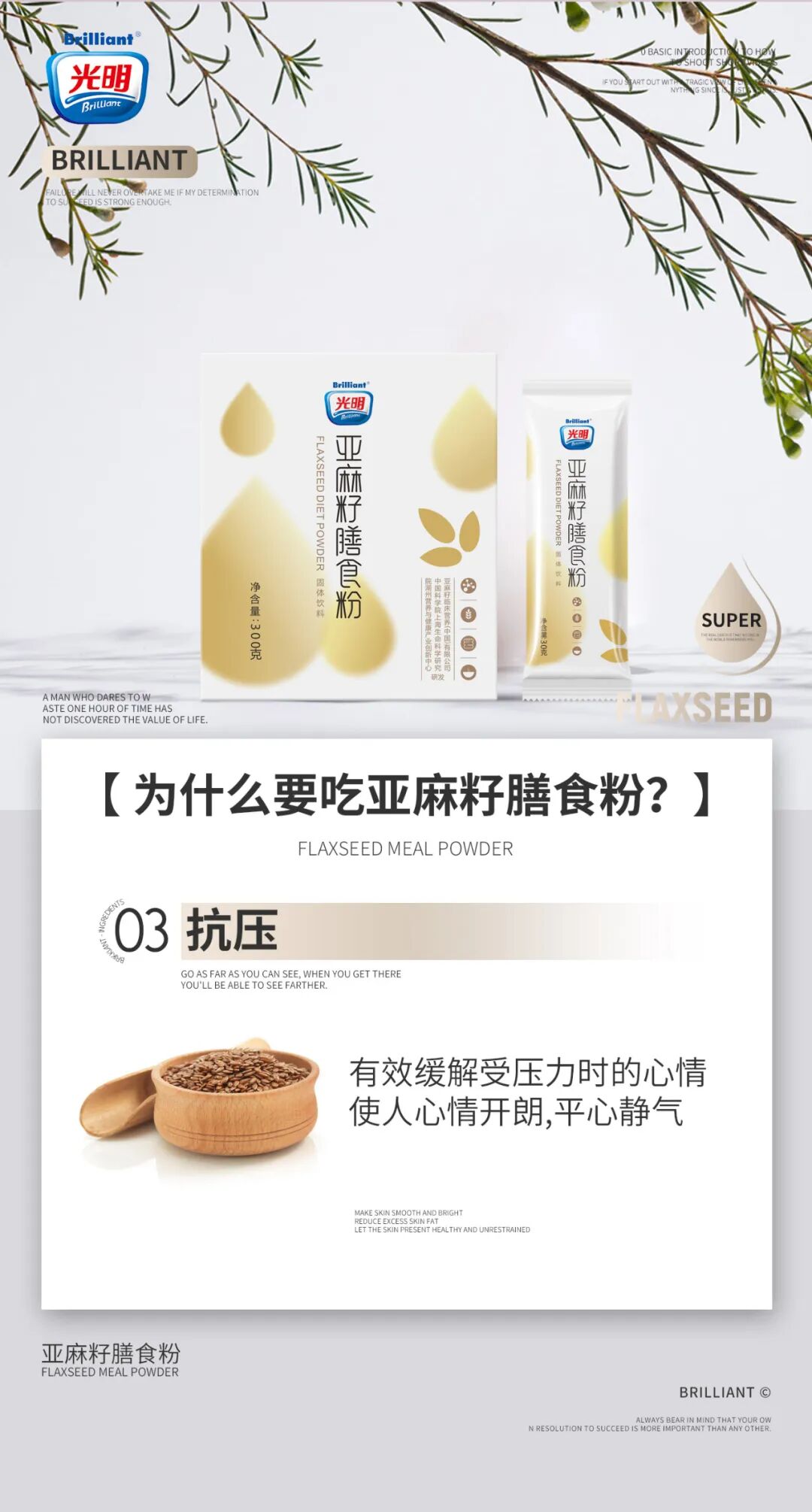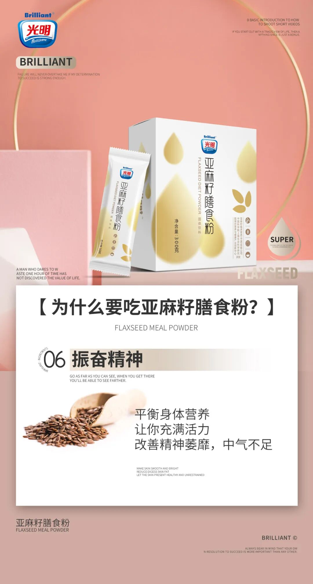 光明亚麻籽膳食粉是光明品牌全新推出的一款新品食品,由中科院创新中心潜心研制,已经注册多个专利,为人们的健康饮食又带来了一个绝佳的选择。