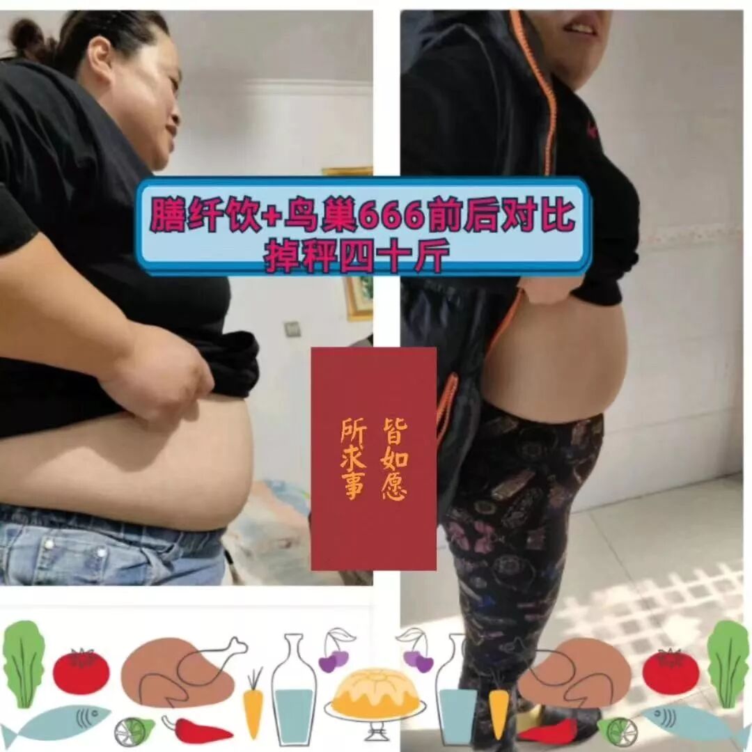 光明膳纤饮+光明鸟巢666前后对比掉秤40斤,反馈一: