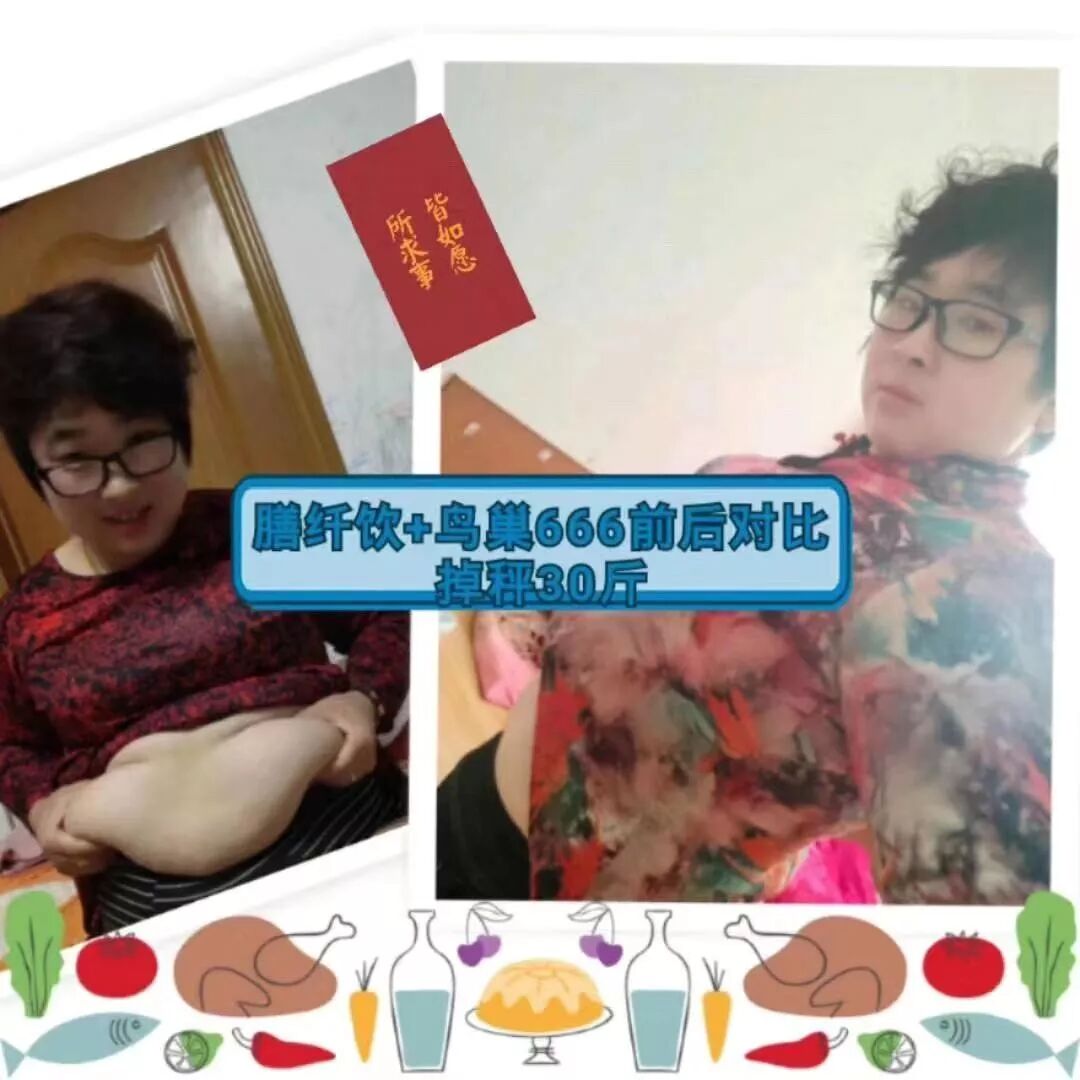 光明膳纤饮+光明鸟巢666前后对比掉秤30斤,反馈二: