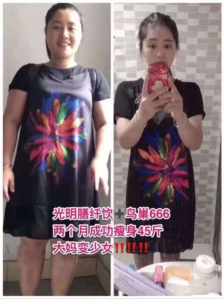 光明膳纤饮+光明鸟巢666前后对比掉秤45斤,反馈五